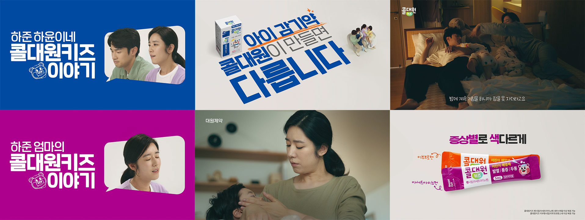 콜대원키즈 시리즈 캠페인은 어린이 감기약을 제품이 아닌 부모와 아이의 관계 속에서 작동하는 브랜드로 재정의한 프로젝트입니다. 아이의 불편함이 회복되는 과정을 일상의 해열·기침·코감기 등 증상별 라인업을 자연스럽게 녹여내어 이를 통해 콜대원키즈를 ‘믿고 선택하는 어린이 감기약’으로 정서적으로 각인시키고자 했습니다.